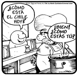How is the chili today (taste)? I'm fine, thanks (feeling)