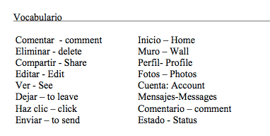 For specific Facebook vocabulary, you can purchase our Facebook Profile project here, which includes a profile template for students to make their own profile of themselves or a famous latino.
