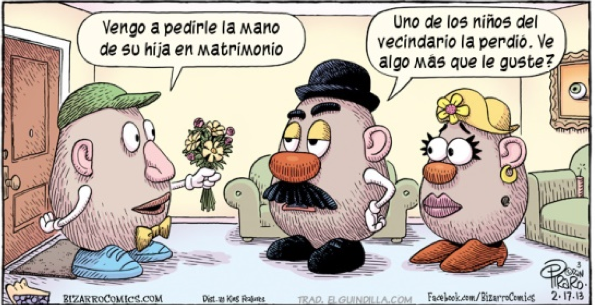 - Use Señor Cara de Papa. I hand out a body part to each student and then ask “¿Quién tiene una nariz?” Whoever has that body part puts it on the body. At the end we can describe our creation! Read more about this activity.
