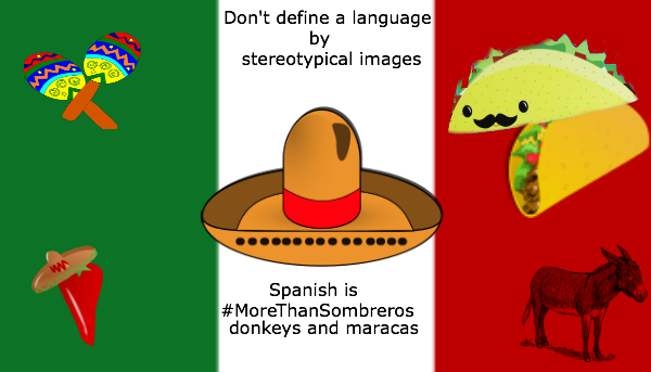 as promoting. As someone who enjoys not only the language, but the culture of the Spanish-speaking world I was embarrassed by what I have seen in my profession. The number of stereotypical imaging used on the products was considerable. I can’t even tell you how many maracas, chile peppers, burritos, and tacos that I came across.