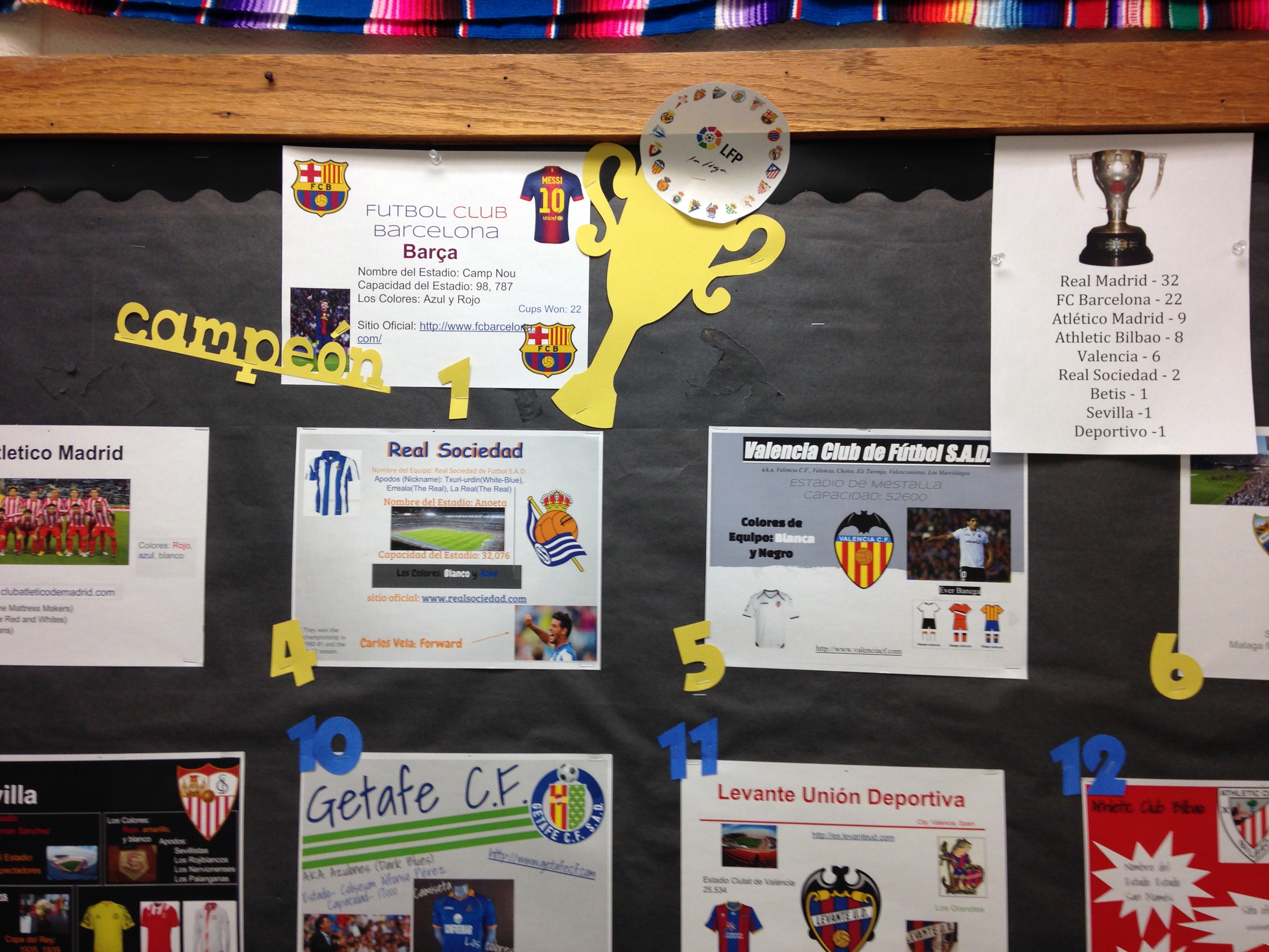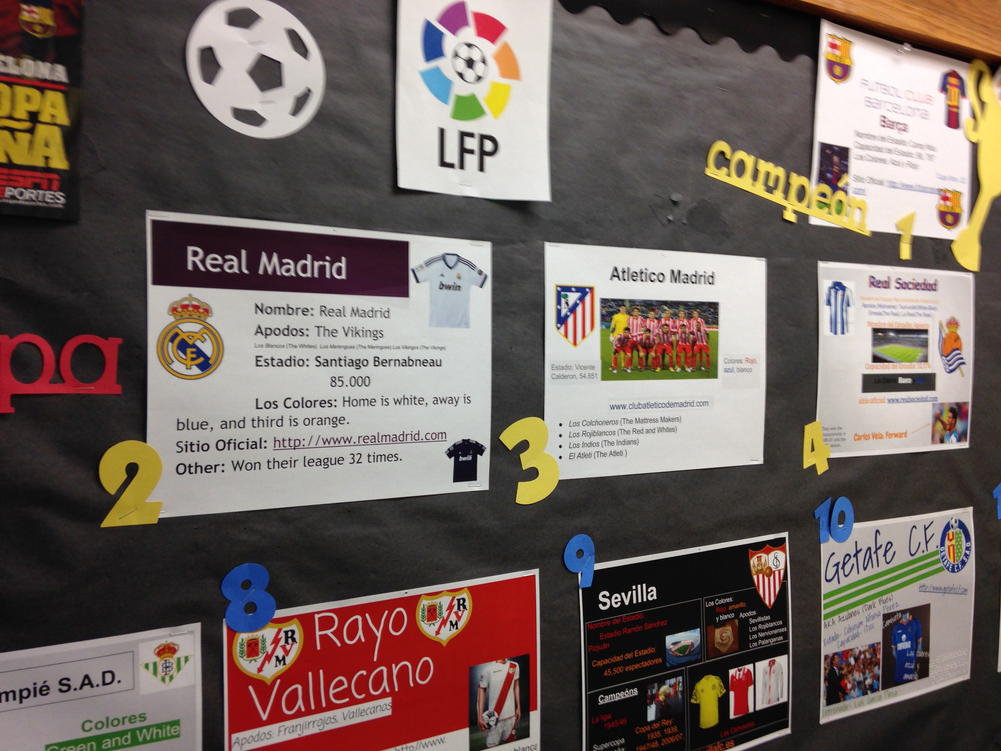 We took slides that our students created as a result of our Futbol webquest and turned it into a bulletin board:
