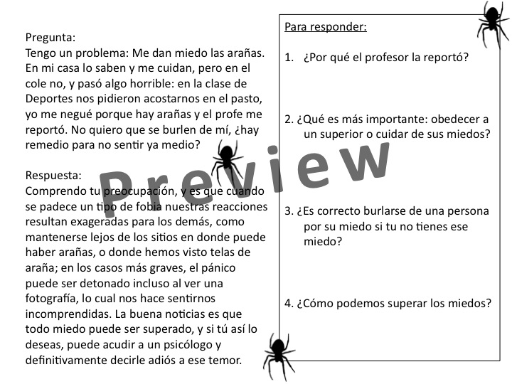 We’ve recently added 2 products featuring excerpts from a Colombian magazine. The first one talks about Hollywood stars such as Justin Beiber and Lady Gaga’s experiences with ghosts. The second one features teen asking questions about their fears with responses from the magazine. Each features questions so you can use print them and use them in your classes right away.