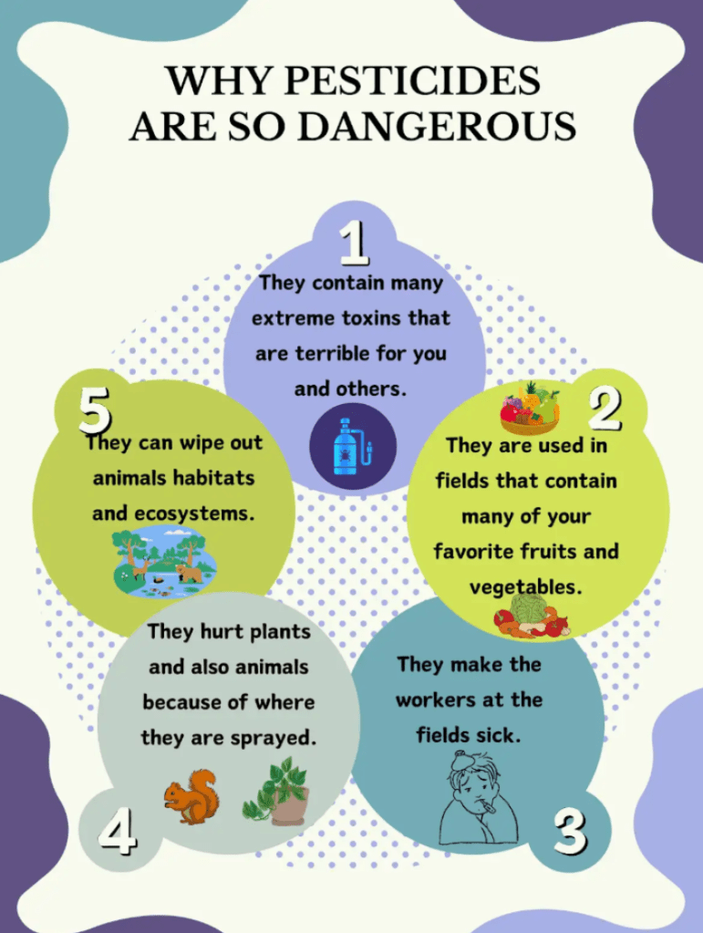 After reading chapter 8, my students read the presentation about Pesticidas from the official Teacher’s Guide. I then had them create an infographic about what they learned. I had to teach them what an infographic was first, and then set them loose on Canva.