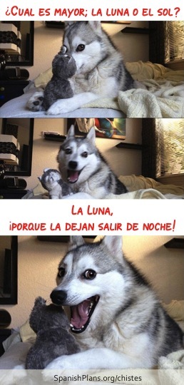 16. Cual es mayor: la luna o el sol? They are both too old for this awful Spanish joke.