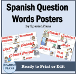 Spanish Question Word Posters: This free set includes the Spanish question words with an easily identifiable image plus the English translation. A must for any Spanish classroom to help questions identify the type of information they need to provide.