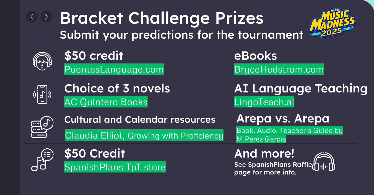 Teachers, you can enter our official Bracket Challenge by filling out this Google Form and trying to pick the winner of each match-up. The teacher(s) with the most points will win one of the following prizes: