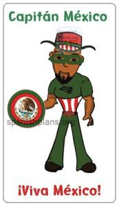 Move over Captain America. Mexico’s most patriotic superhero can sing “Cielito Lindo” as fast as a speeding bullet. From the top of the Sun Pyramid, Cápitan México looks over this once Aztec nation. Sticker comes without watermark. Glossy finish. 3.5″ x 2″