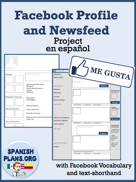 name, origin, birthday, favorite activities, hobbies, movies, tv shows, comments from ‘friends’ and more. Includes list for common vocabulary/terminology used by Facebook as well as a list of Spanish texting abbreviations.